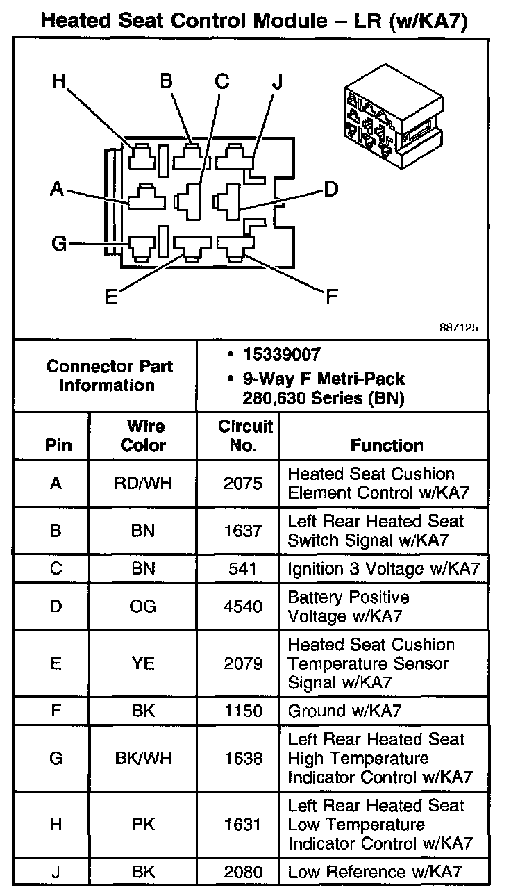 Heated Seat Control Module - LR (With RPO Code KA7):
