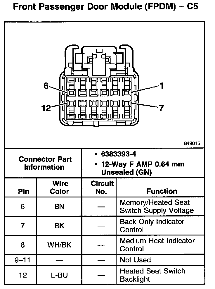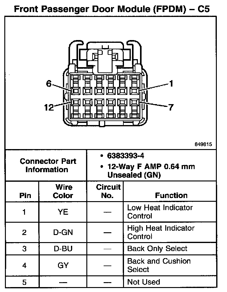 Front Passenger Door Module (FPDM) - C5 (Heated Seat Switch With RPO Code KA7):