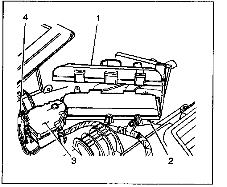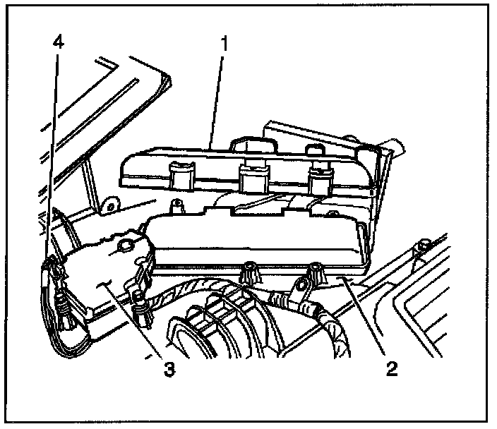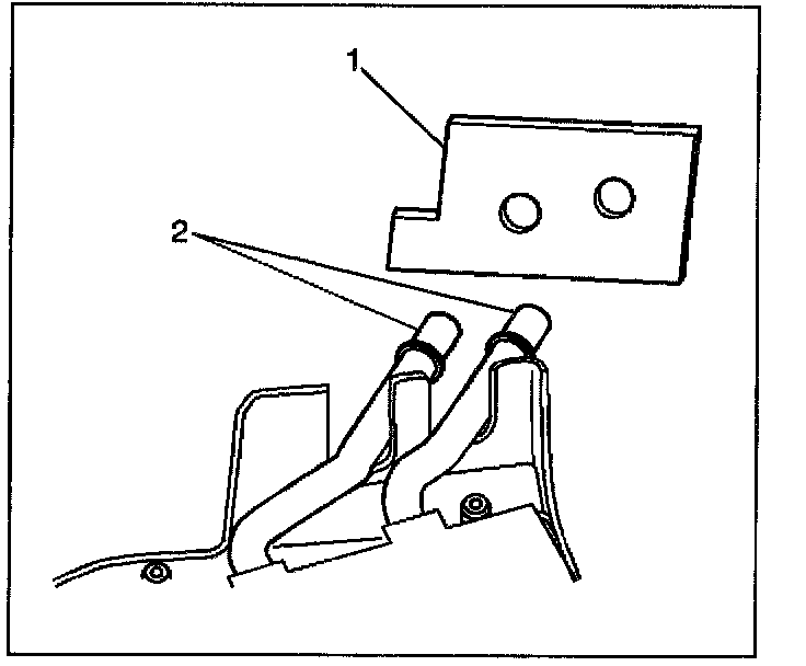 3. Remove the heater core cover (1) from the HVAC module assembly (2).