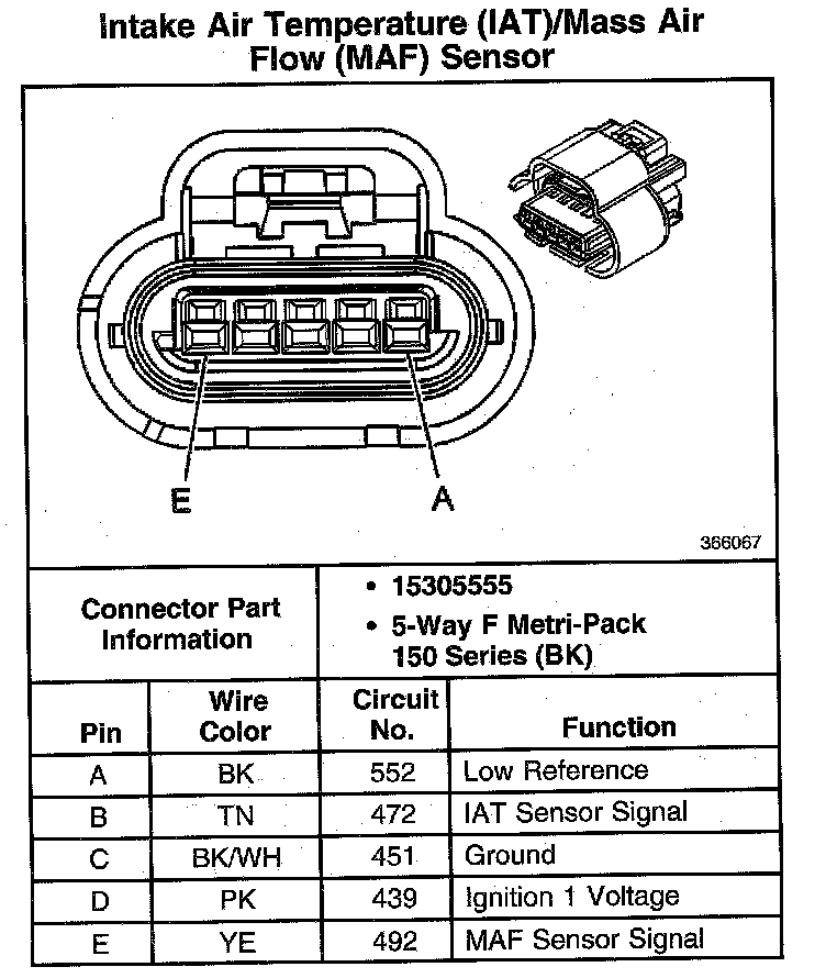 Intake Air Temperature (IAT)/Mass Air Flow (MAF) Sensor: