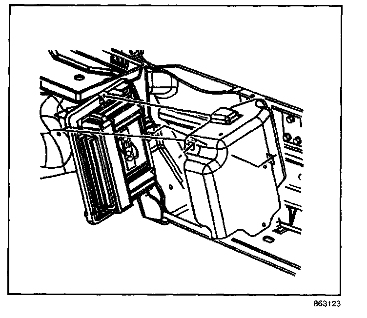 1. Release the PCM cover mounting holes away from the mounting tabs on the PCM mounting bracket.