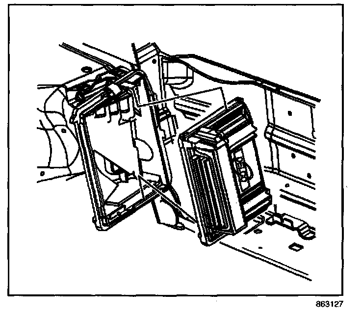 1. Install the PCM to the PCM mounting bracket ensuring that the mounting tabs are engaged.