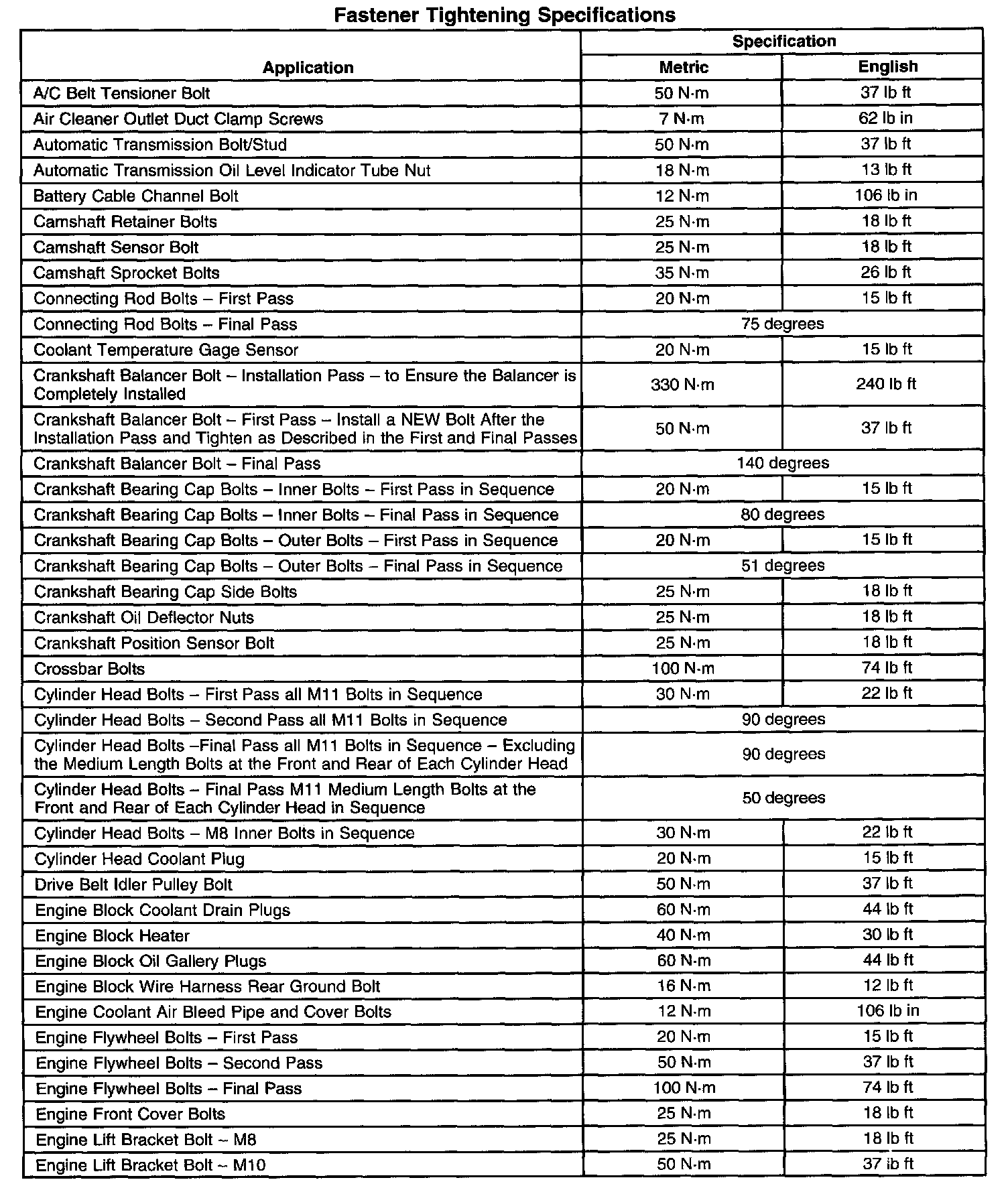 Fastener Tightening Specifications