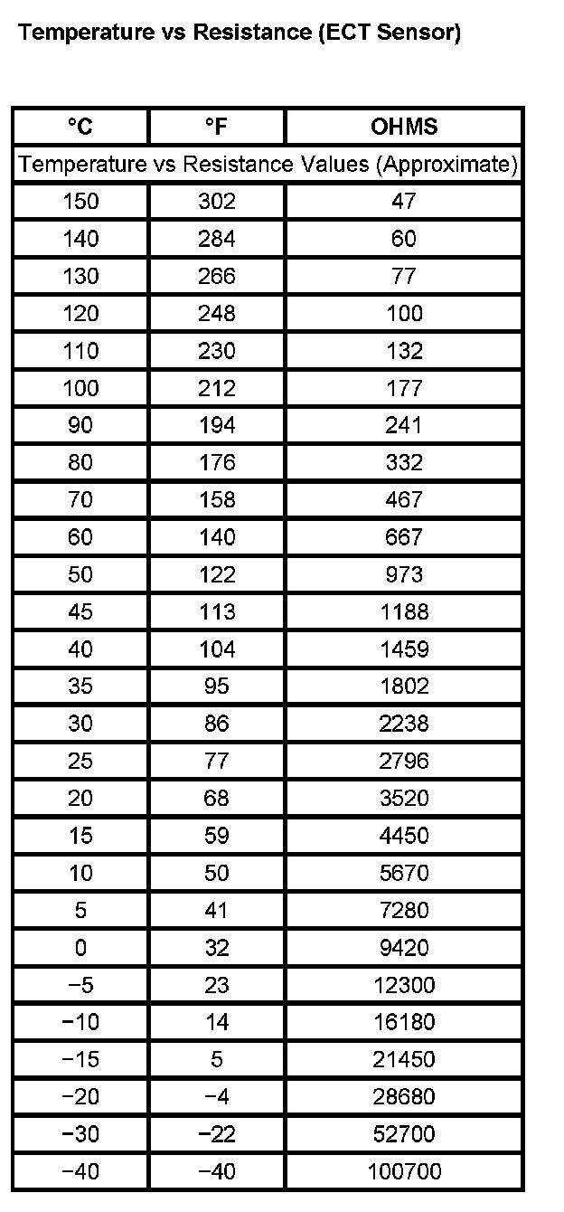 Temperature Vs Resistance (ECT Sensor):