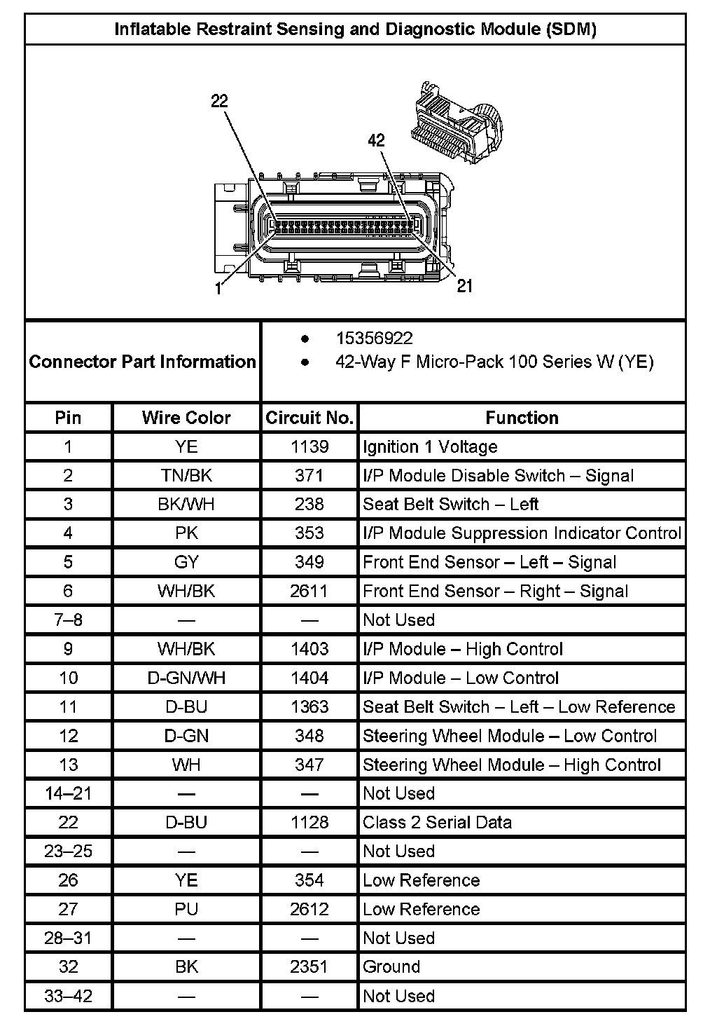 Inflatable Restraint Sensing And Diagnostic Module (SDM):