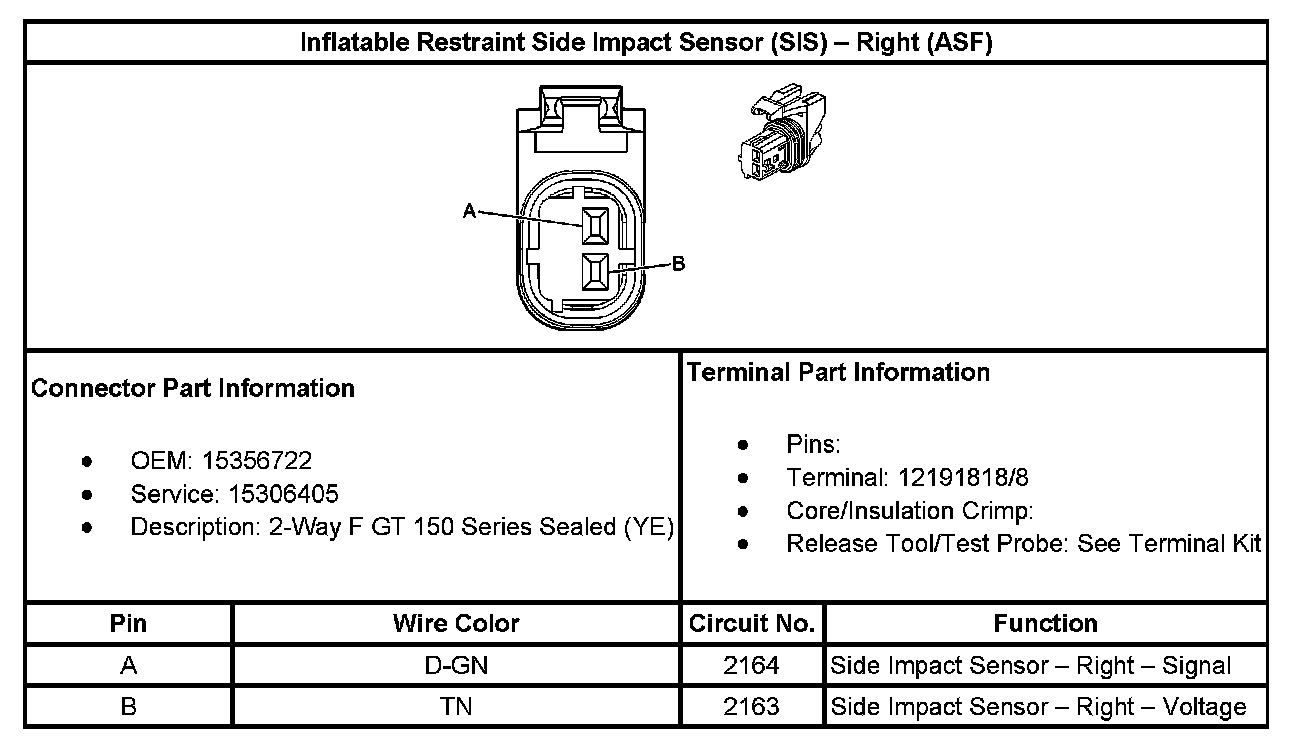 Inflatable Restraint Side Impact Sensor (SIS) - Right (With RPO Code ASF):