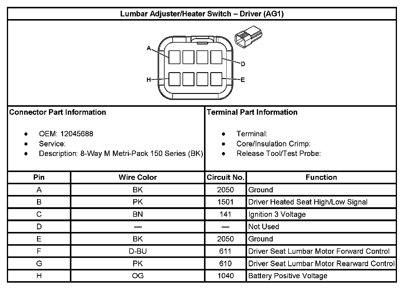 Lumbar Adjuster/Heater Switch - Driver (With RPO Code AG1):