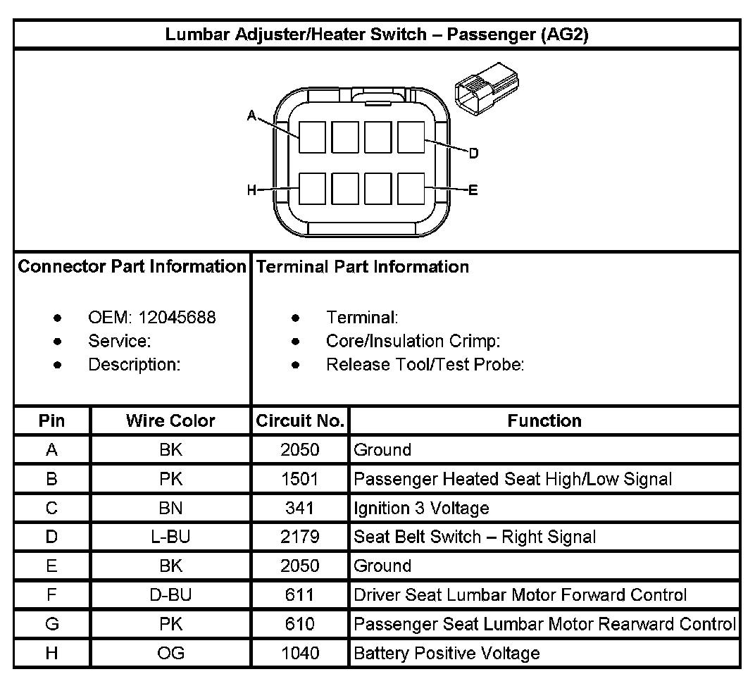Lumbar Adjuster/Heater Switch - Passenger (With RPO Code AG2):