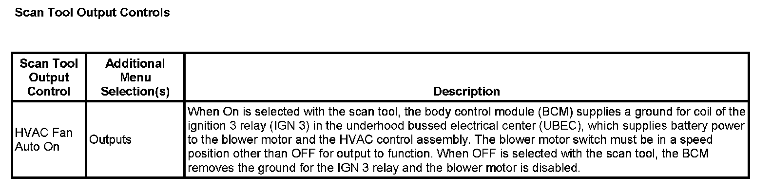 Scan Tool Output Controls: