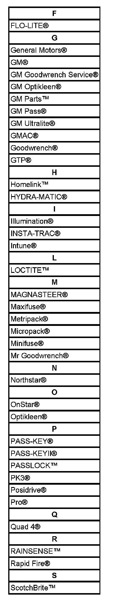Listed are Registered Trademarks ((R)) or Non-Registered Trademarks ((TM)) which may appear in this service data.