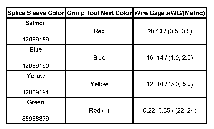 5. Select the proper duraseal splice sleeve (2) and the required crimp nest tool, refer to the Crimp and Seal Splice Table.