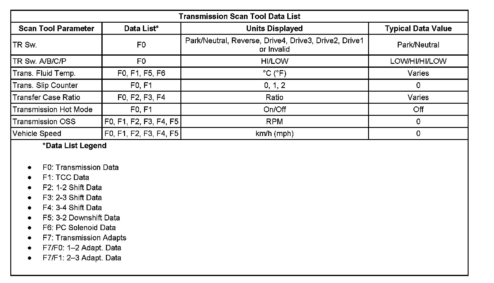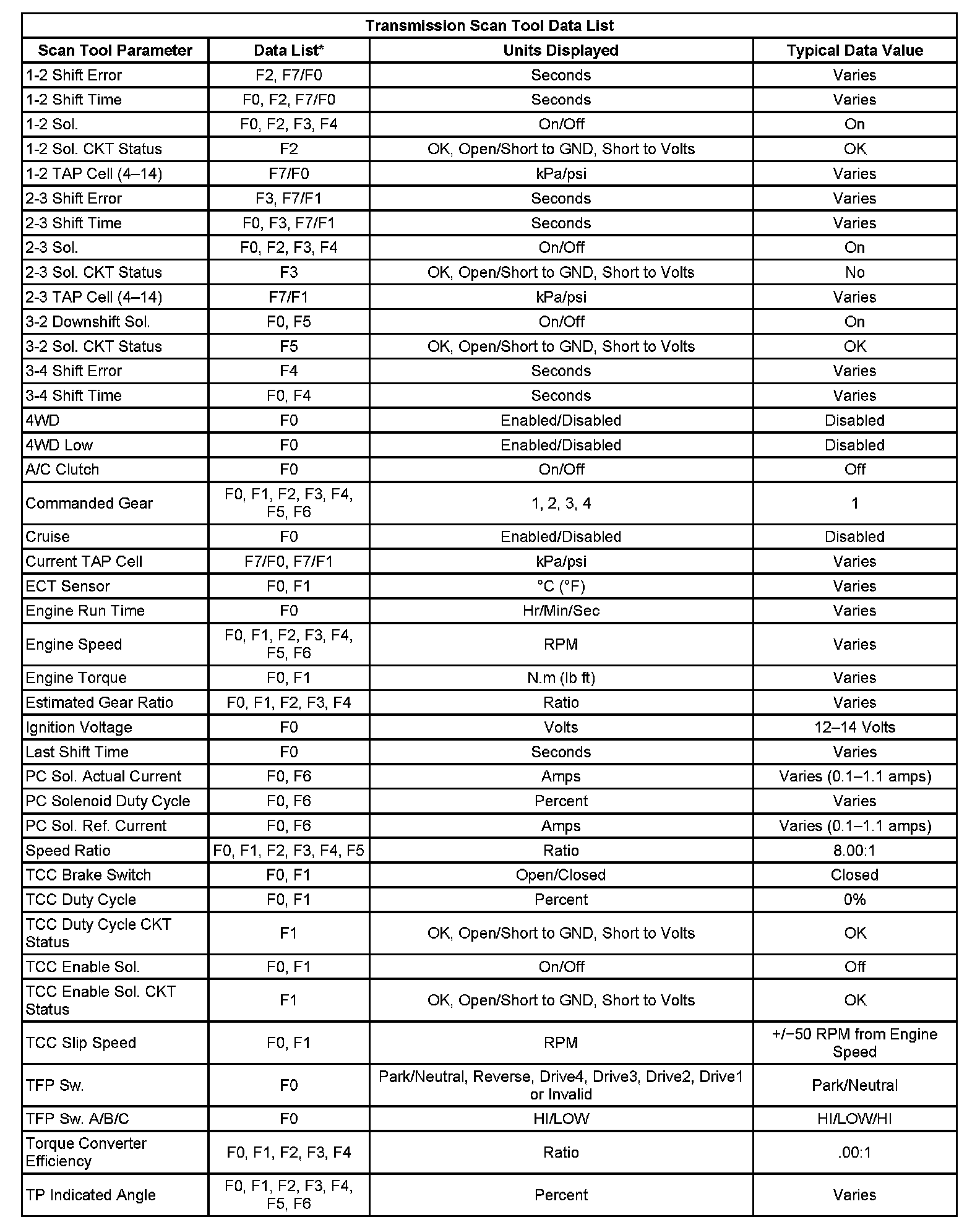 Home >> Hummer >> 2006 >> H3 L5-3.5L >> Repair and Diagnosis >> Powertrain Management >> Transmission Control Systems >> Testing and Inspection >> Scan Tool Data List