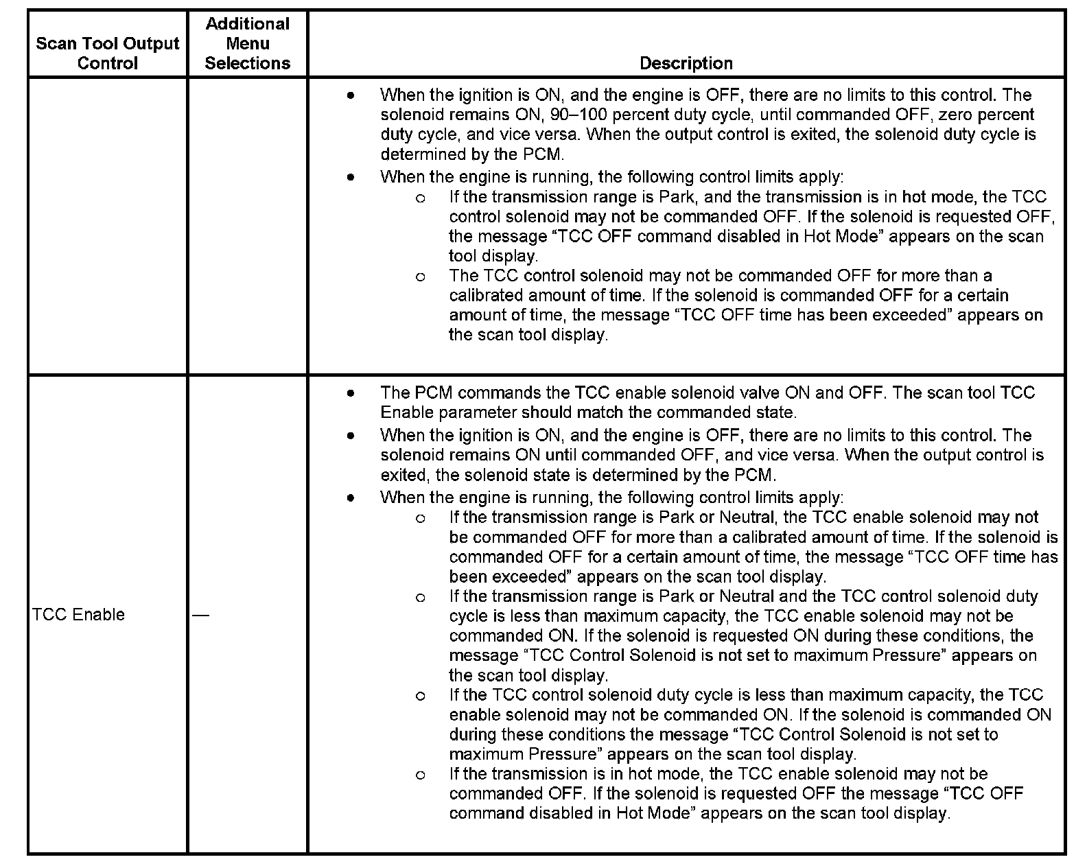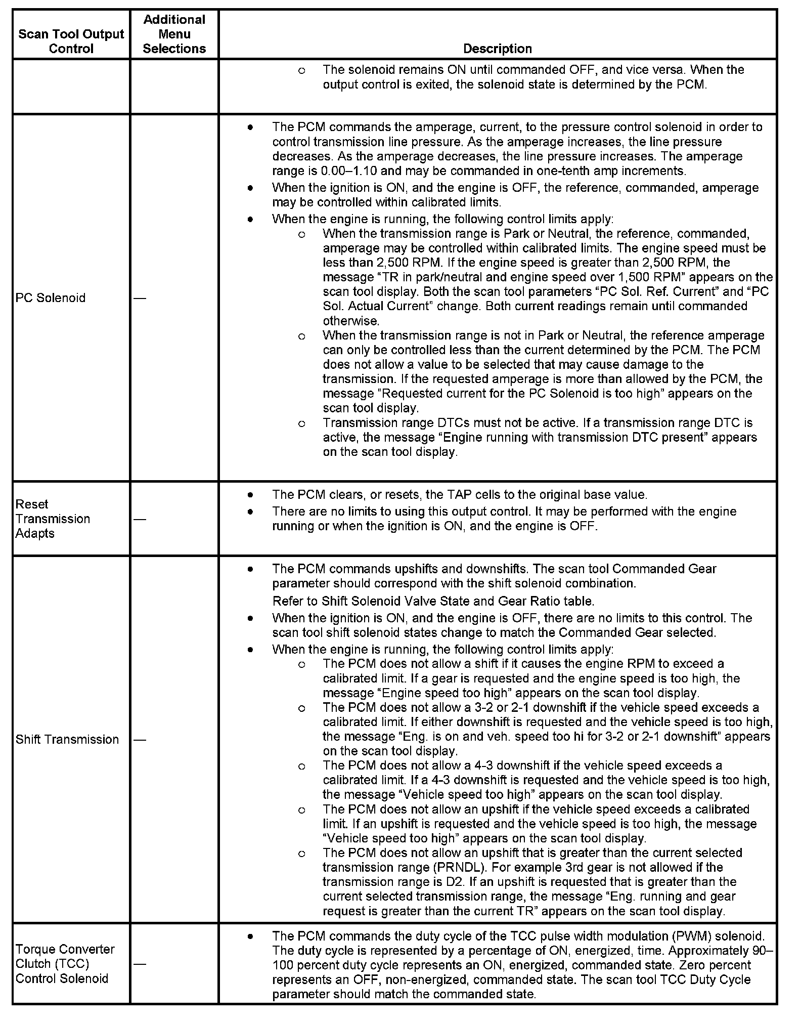 Scan Tool Output Controls