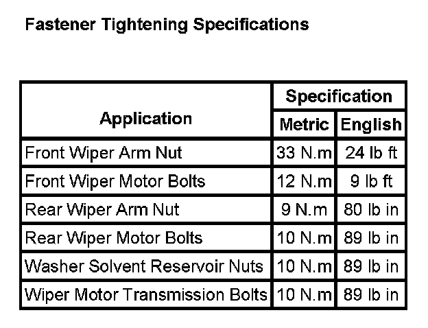 Wiper and Washer Systems: Specifications