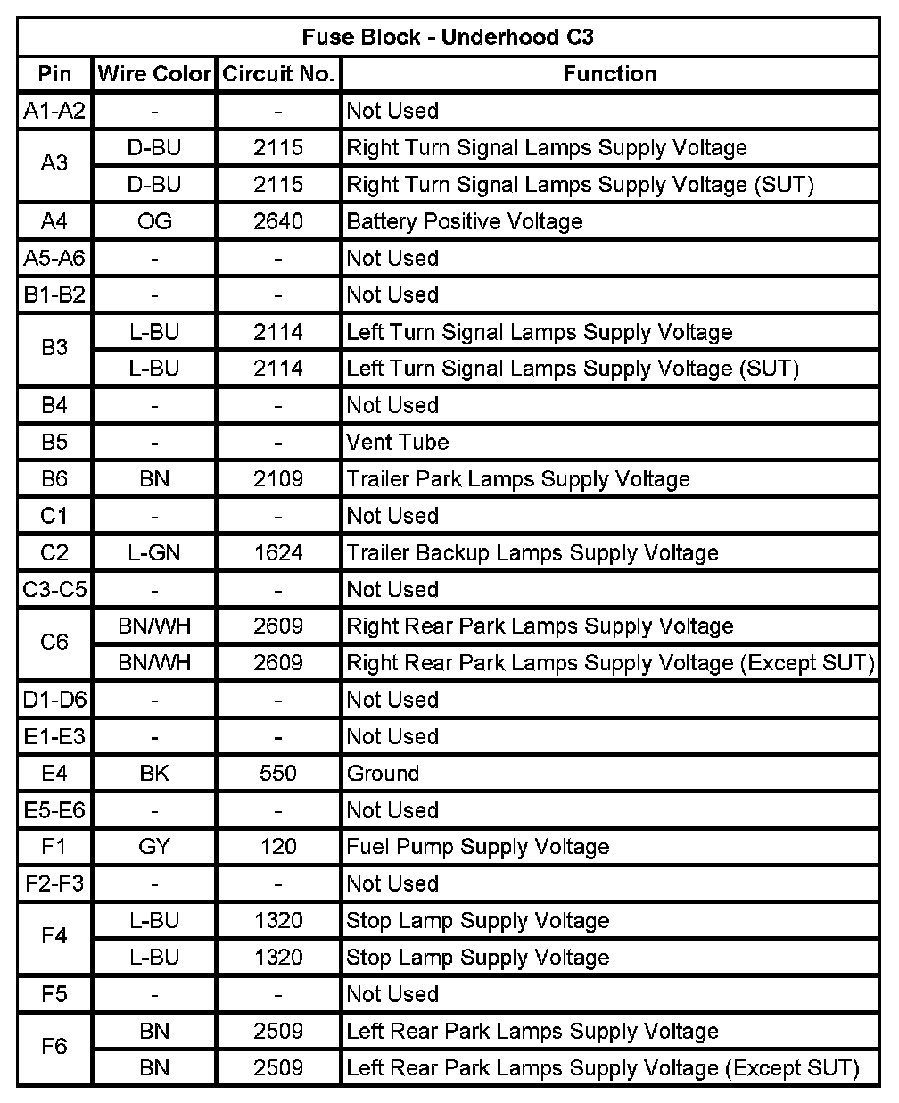 Fuse Block - Underhood C2 (Pin A1 To D12):