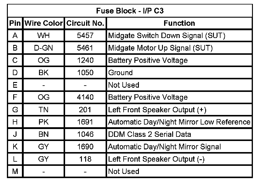 Fuse Block - Underhood C1 (Pin D4 To F12):