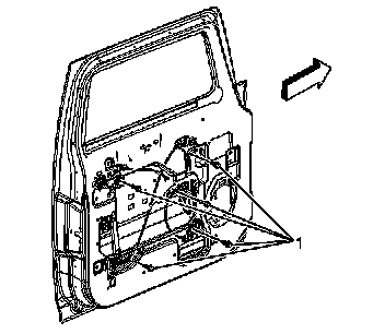7. Remove the 5 fasteners (1) retaining the window module to the door.