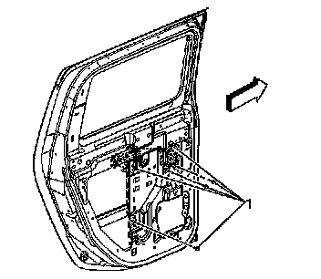 7. Remove the 5 fasteners (1) retaining the window module to the door.