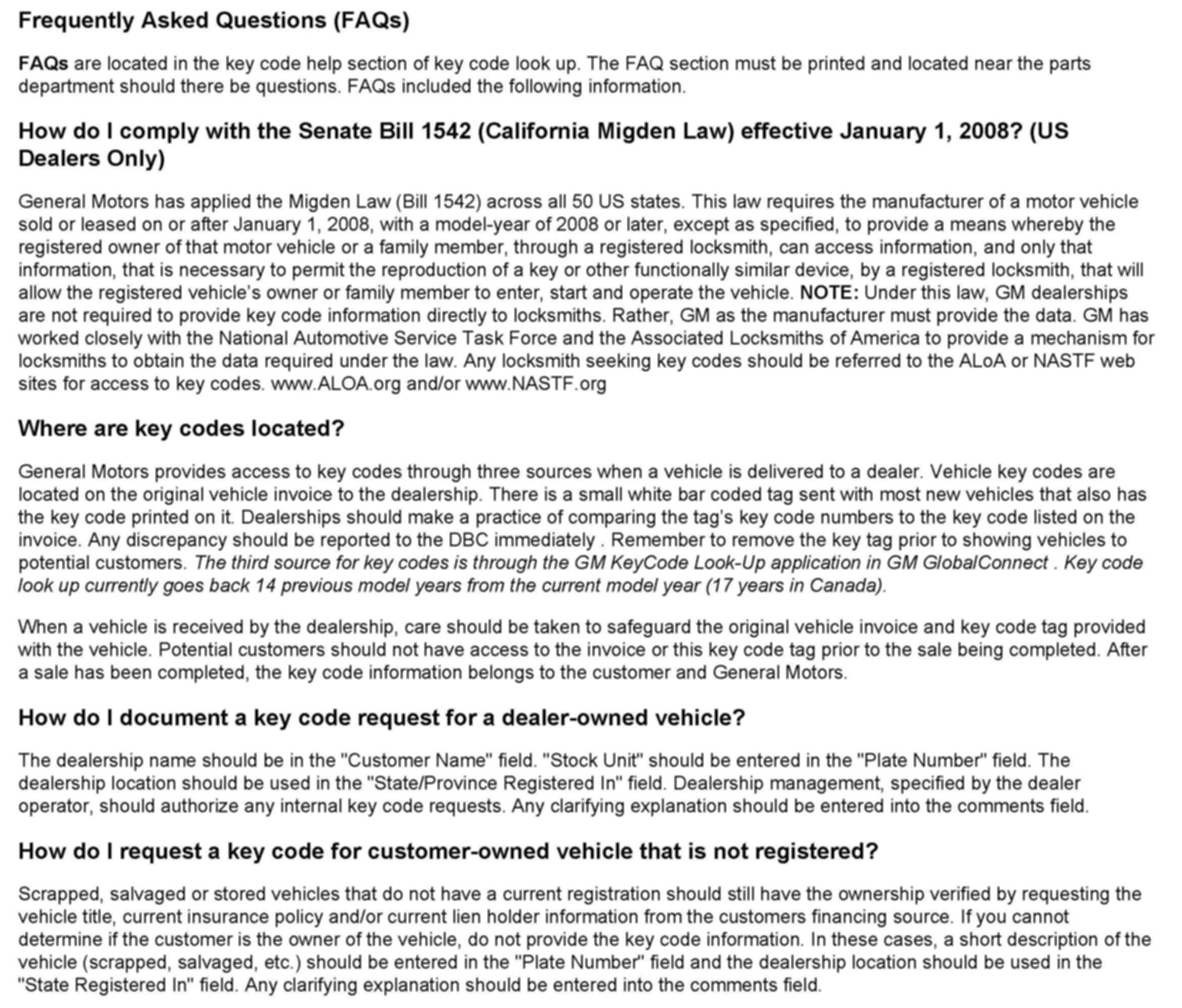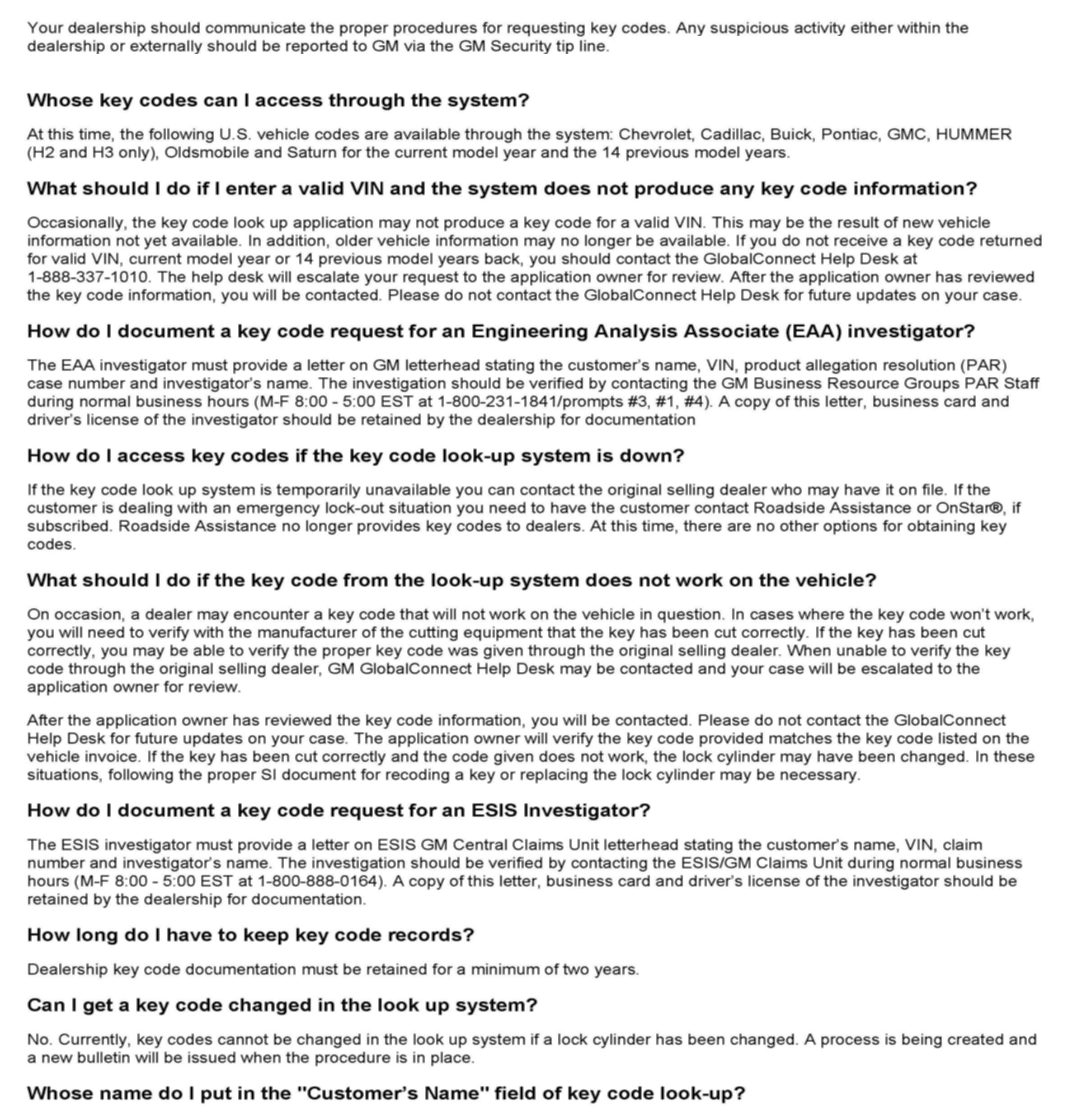 ^ Do not put yourself, or your dealership in the position of needing to "explain" a key code look up to either General Motors or law enforcement officials.