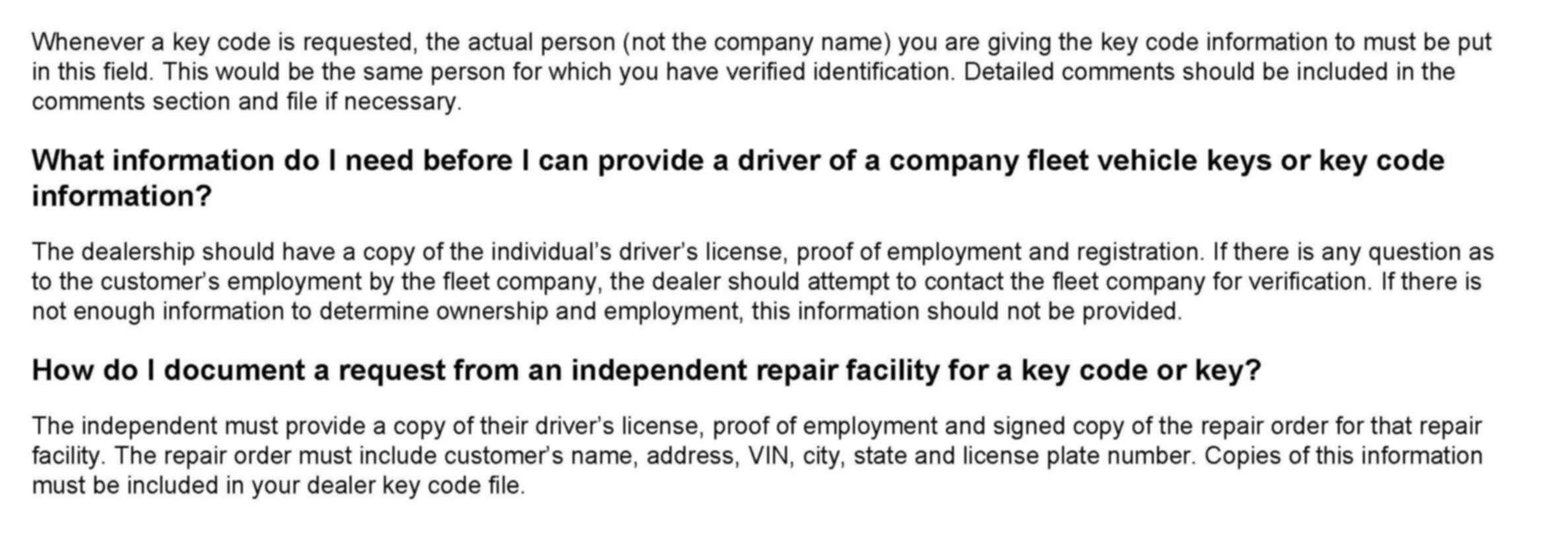 ^ Dealership management must review key code look up usage for compliance to the stated policies and procedures.