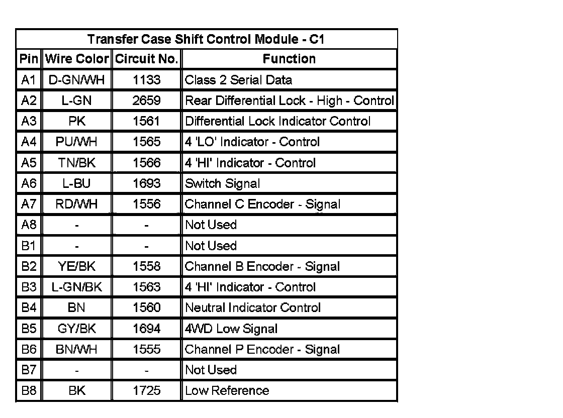 Transfer Case Control Connector End ViewsTransfer Case Shift Control Module - C1: