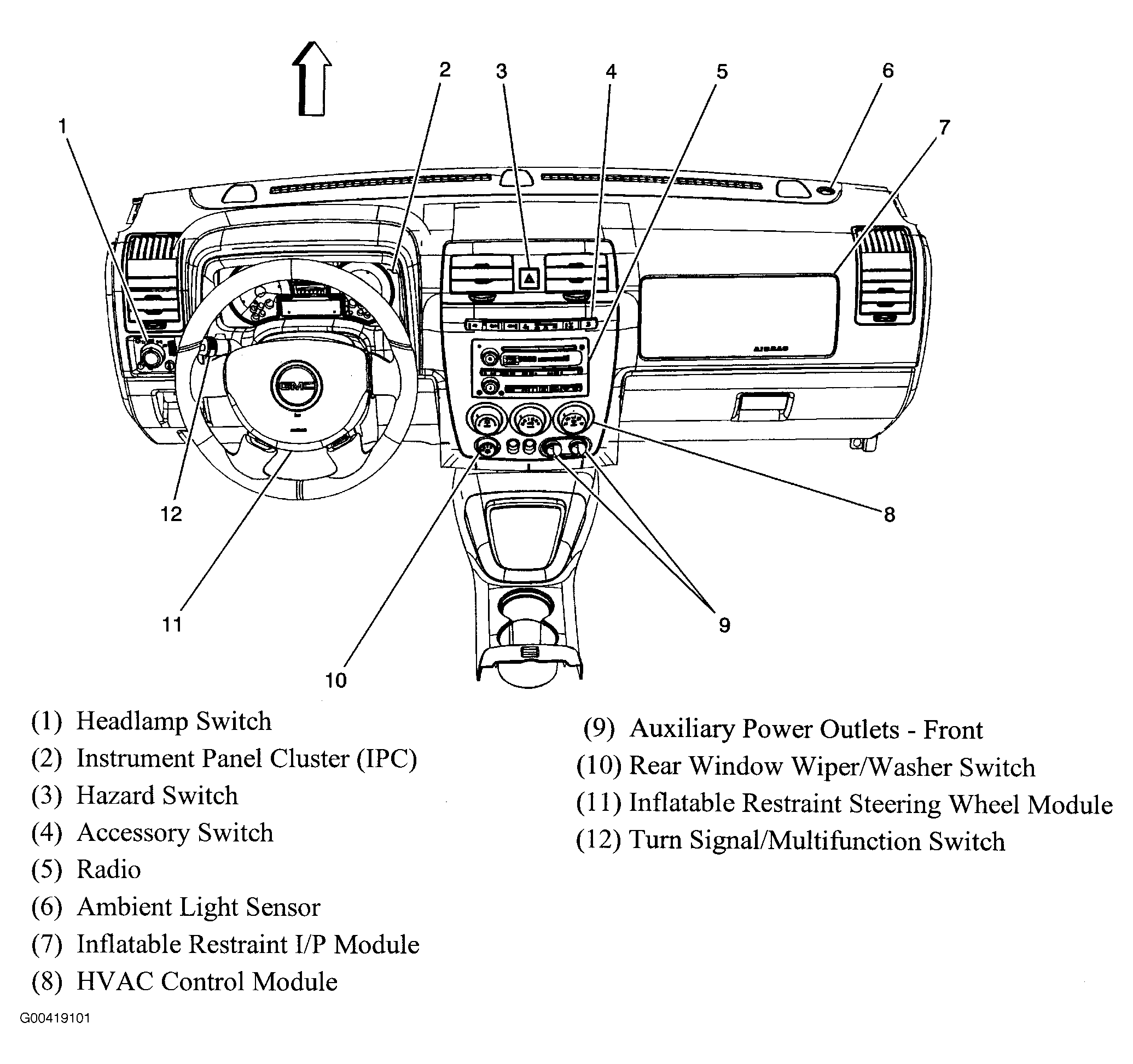 Inflatable Restraint I/P Module Above dash compartment. See Figure.