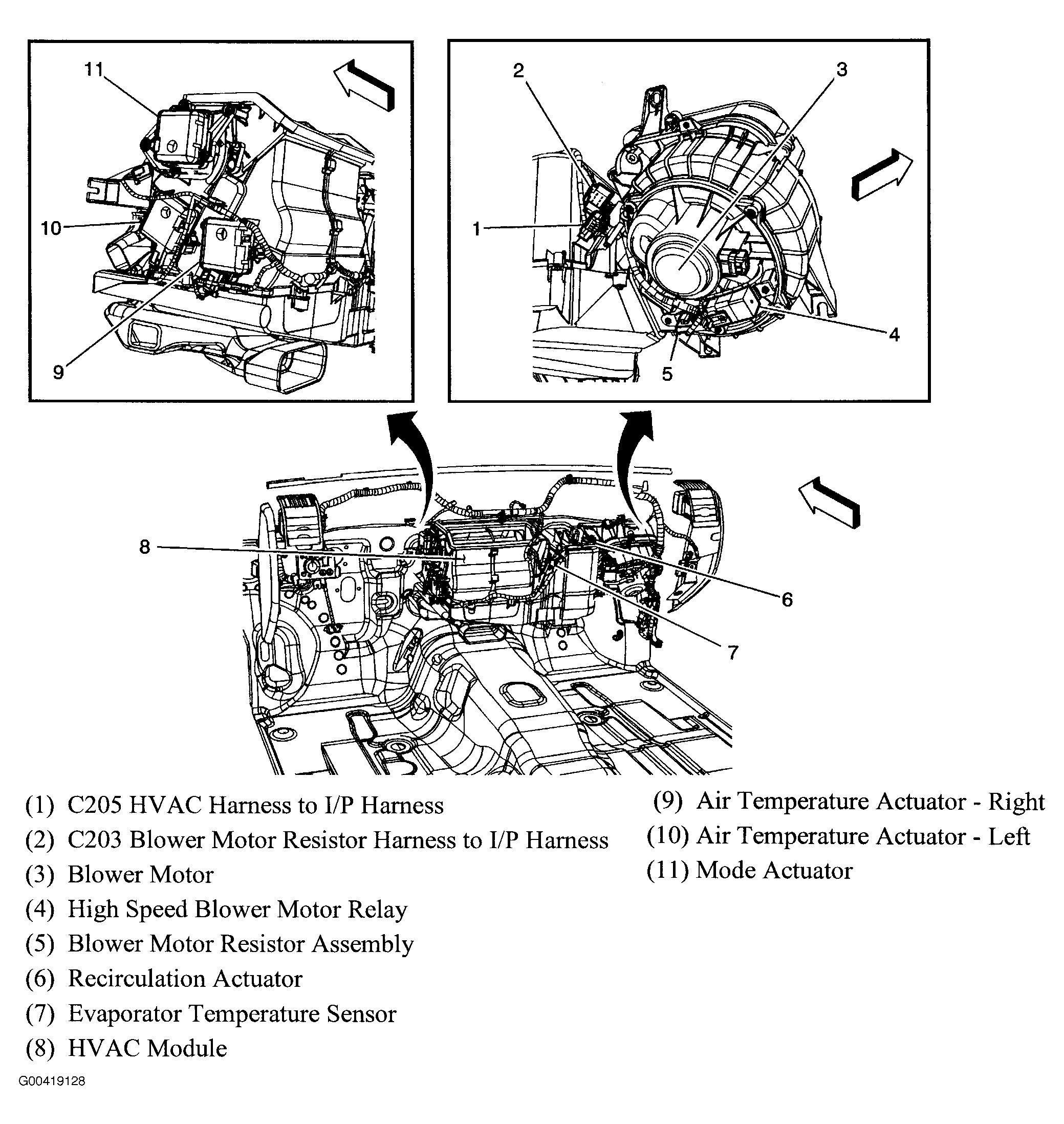 HVAC Module Beneath radio. See Figure.