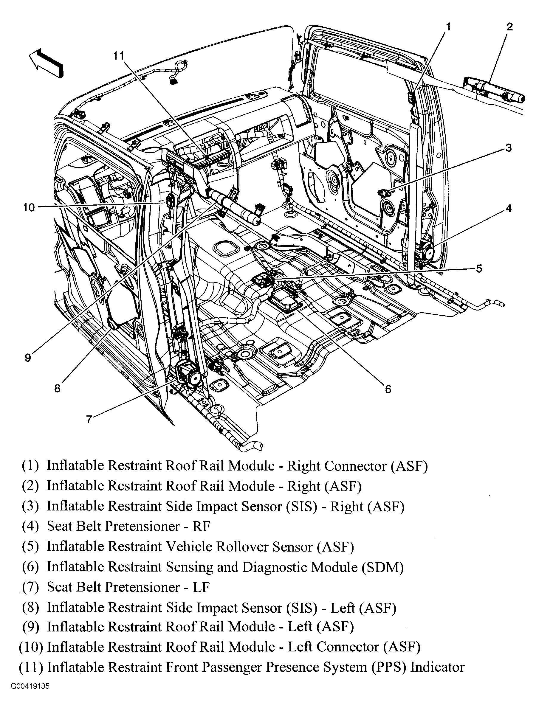 Inflatable Restraint Roof Rail Module - Right Upper right "B" pillar. See Figure.
