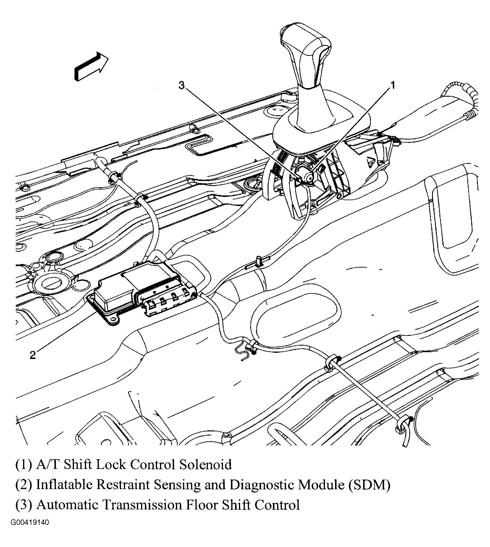 Automatic Transmission Floor Shift Control Beneath center console. See Figure.