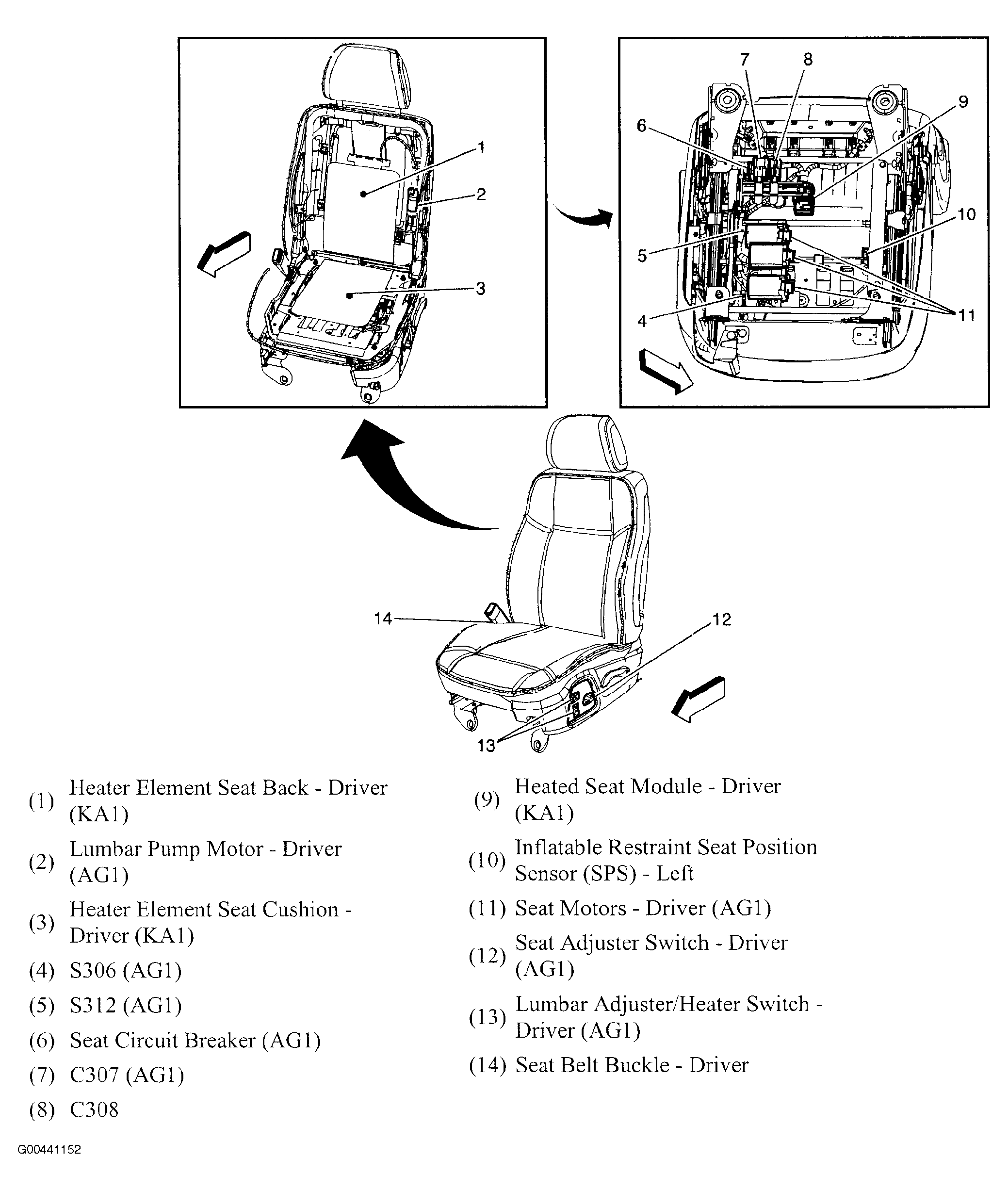 Heated Seat Module - Driver In driver seat bottom. See Figure.