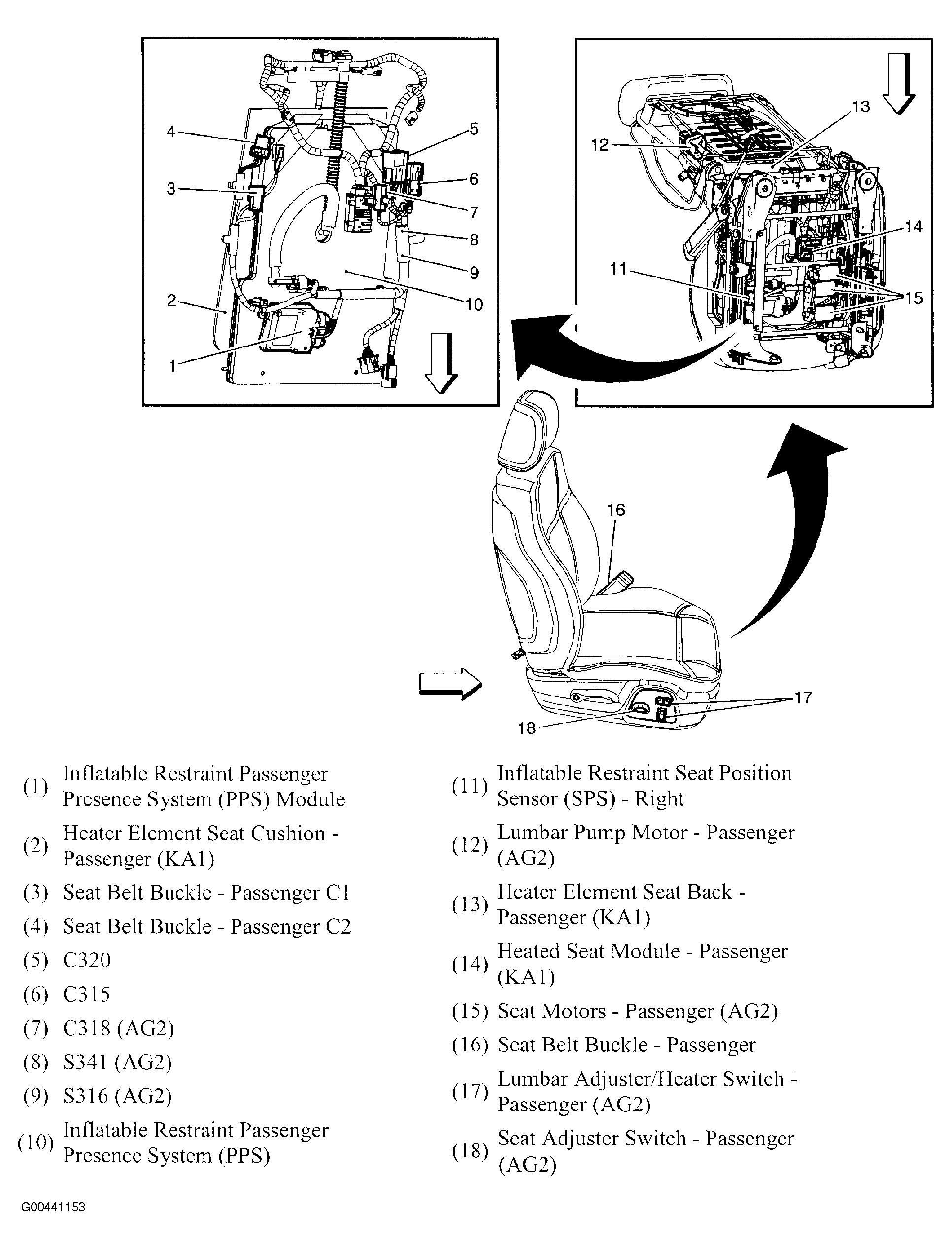 Inflatable Restraint Passenger Presence System (PPS) Module On underside of cushion. See Figure.