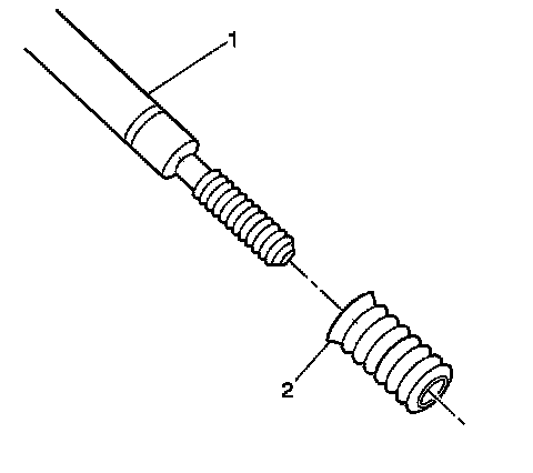 12. Apply threadlock sealant GM P/N 12345493 (Canadian P/N 10953488), J 42385-109, LOCTITE 277(R) or equivalent (1) to the insert OD threads (2).