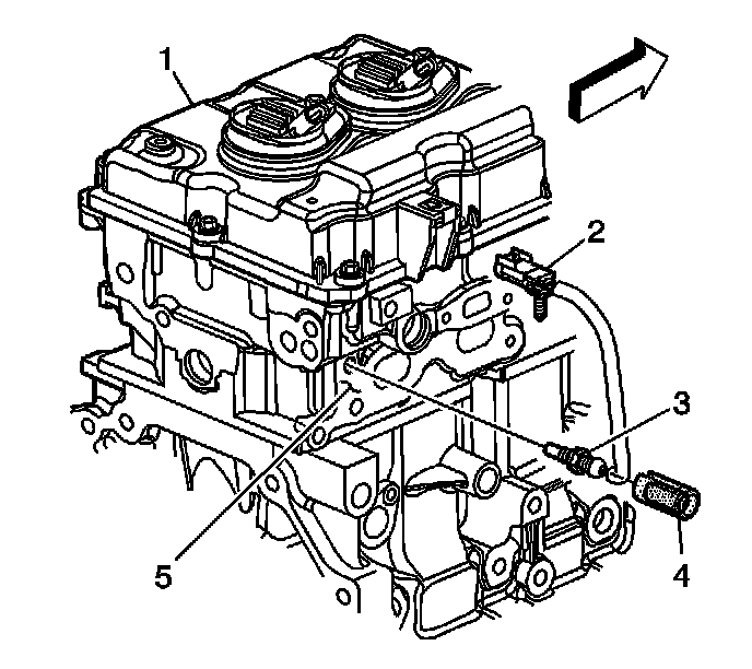 3. Using the J 45861 (4) carefully remove the ECT sensor (3) from the cylinder head (5).