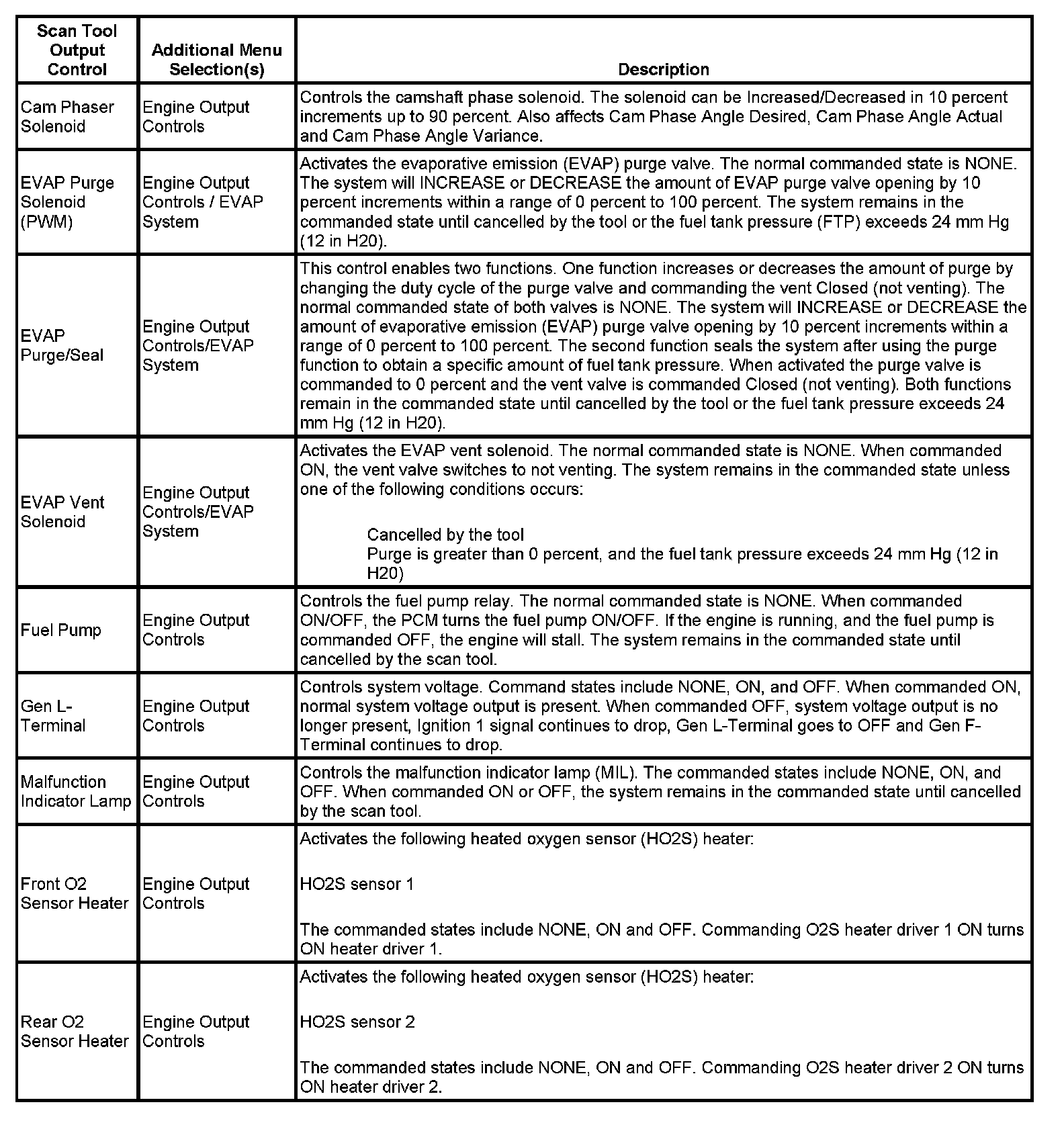 Scan Tool Output Controls