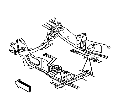 7. Remove the bolts and the nuts retaining the transmission support to the frame.