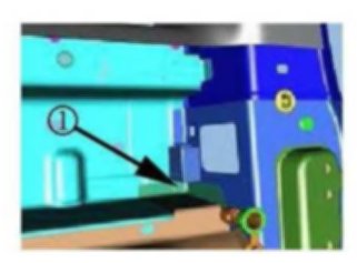 14. Secure the trailer module harness (1) to the main body wiring harness with at least 5 cable ties evenly spread (from the trailer module mounting location to the front door sill)