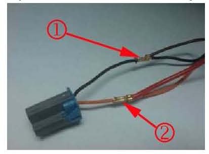 11. Black wire (1) of the trailer module harness to the Black wire on the accessory wire for GND.