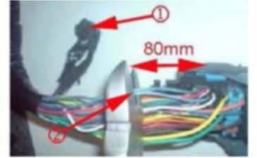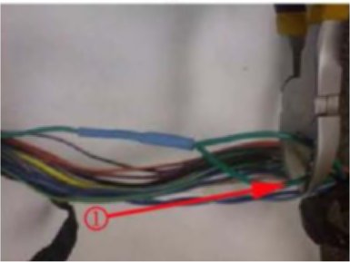 39. Cut the Yellow wire (1) as shown with a side cutter (N.B: not the twisted yellow wire).