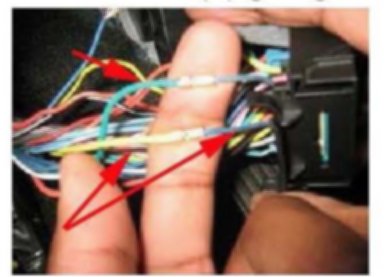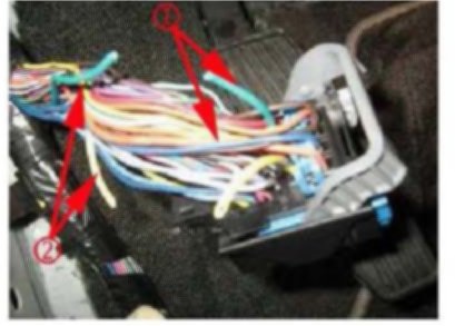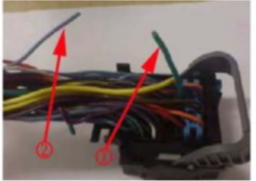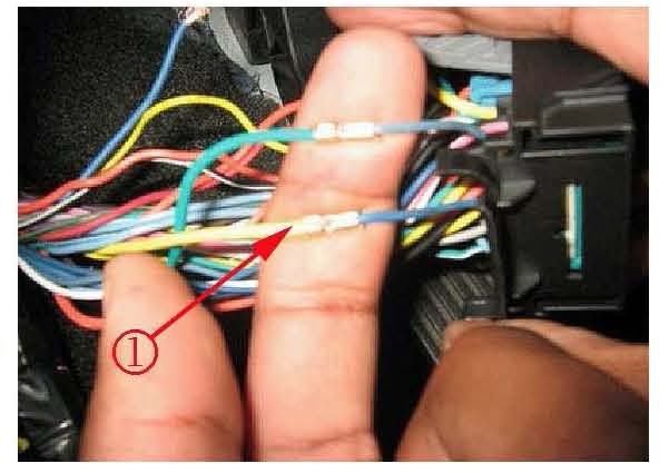 23. After cutting the wires (1) there will be 2 wires coming out of the Body Control Module connector. 1 light Blue (pin J1-A19) and 1 dark Blue (pin J1-A3) as shown.