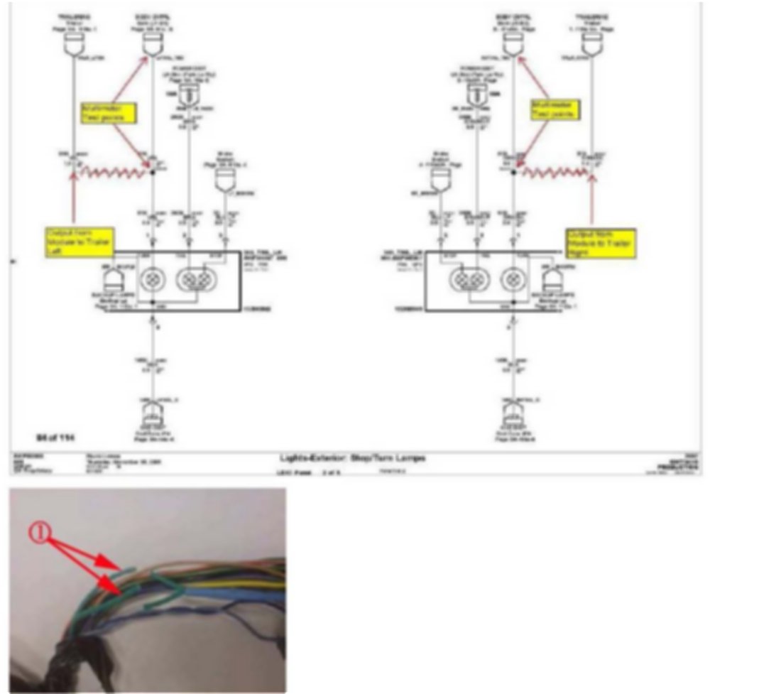 37. Connect the remaining wire (2) to Trailer Module harness wire labeled "trailer output right".