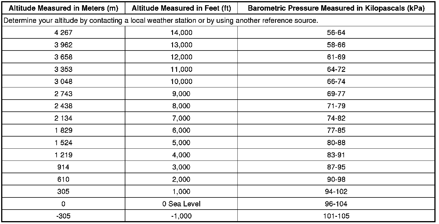 Altitude Versus Barometric Pressure