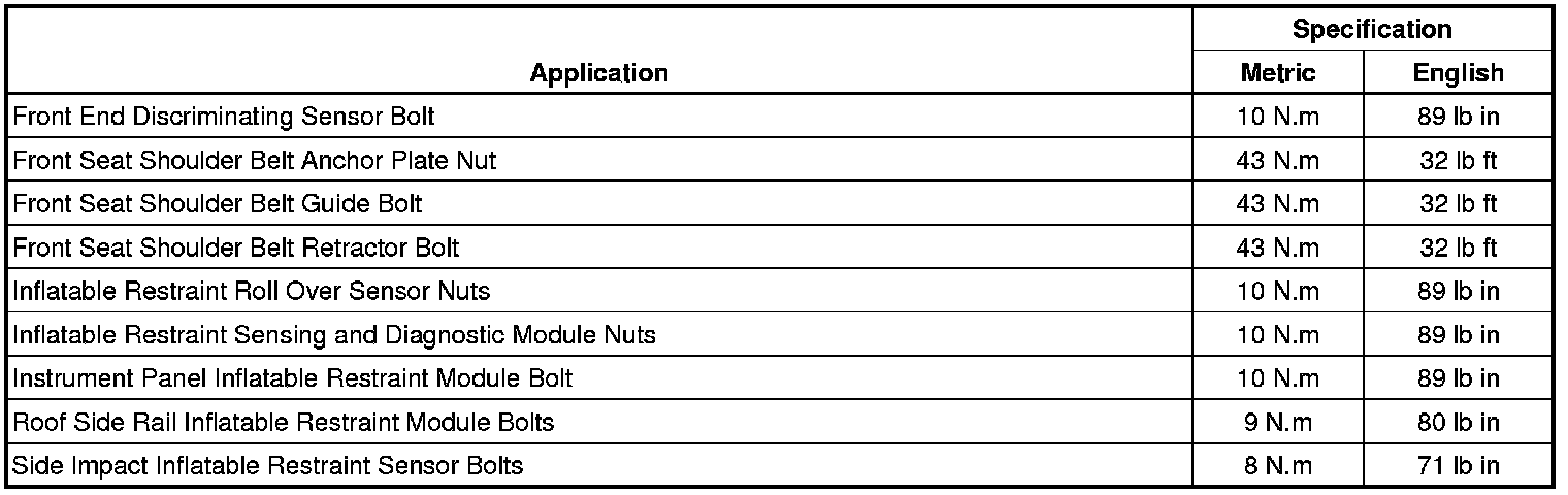 Fastener Tightening Specifications