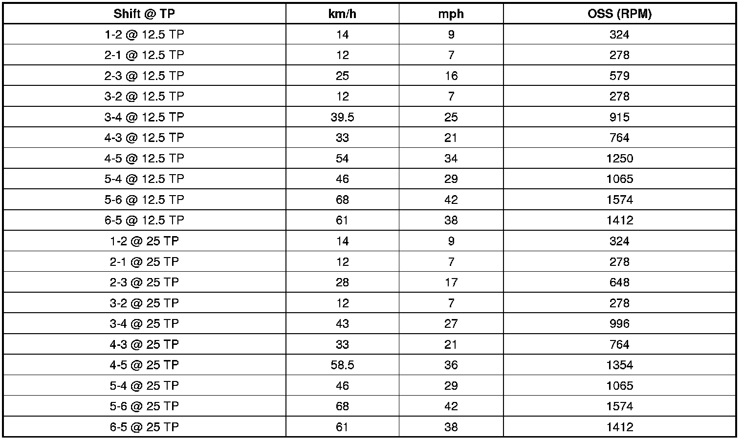 Home >> Hummer >> 2008 >> H2 V8-6.2L >> Repair and Diagnosis >> Specifications >> Mechanical Specifications >> Automatic Transmission/Transaxle >> System Specifications >> Shift Speed