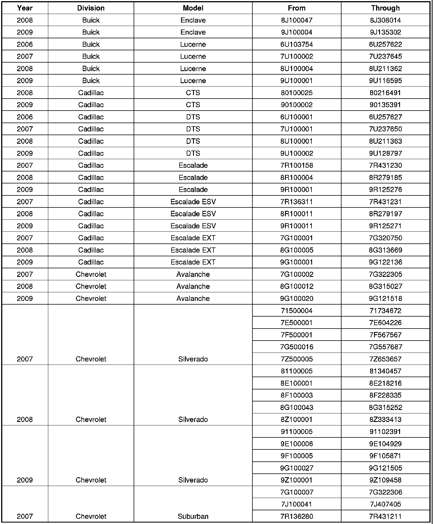 Involved are certain 2006-2009 model year Buick Lucerne; Cadillac DTS; HUMMER H2; 2008-2009 model year Buick Enclave; Cadillac CTS; 2007-2009 model year Cadillac Escalade, Escalade ESV, Escalade EXT; Chevrolet Avalanche, Silverado, Suburban, Tahoe; GMC Acadia, Sierra, Yukon, Yukon XL; Saturn OUTLOOK; and 2009 model year Chevrolet Traverse vehicles equipped with a heated washer fluid system (RPO XA7/CHW), and built within these VIN breakpoints: