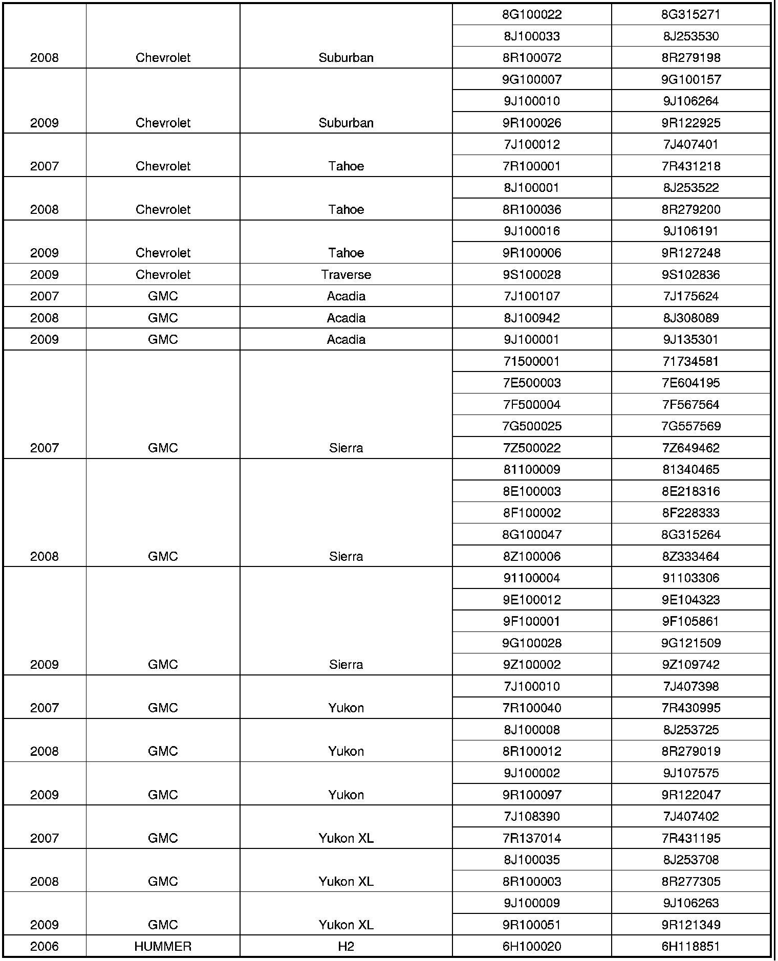 2007-2009 GMC Acadia, Sierra, Yukon, Yukon XL