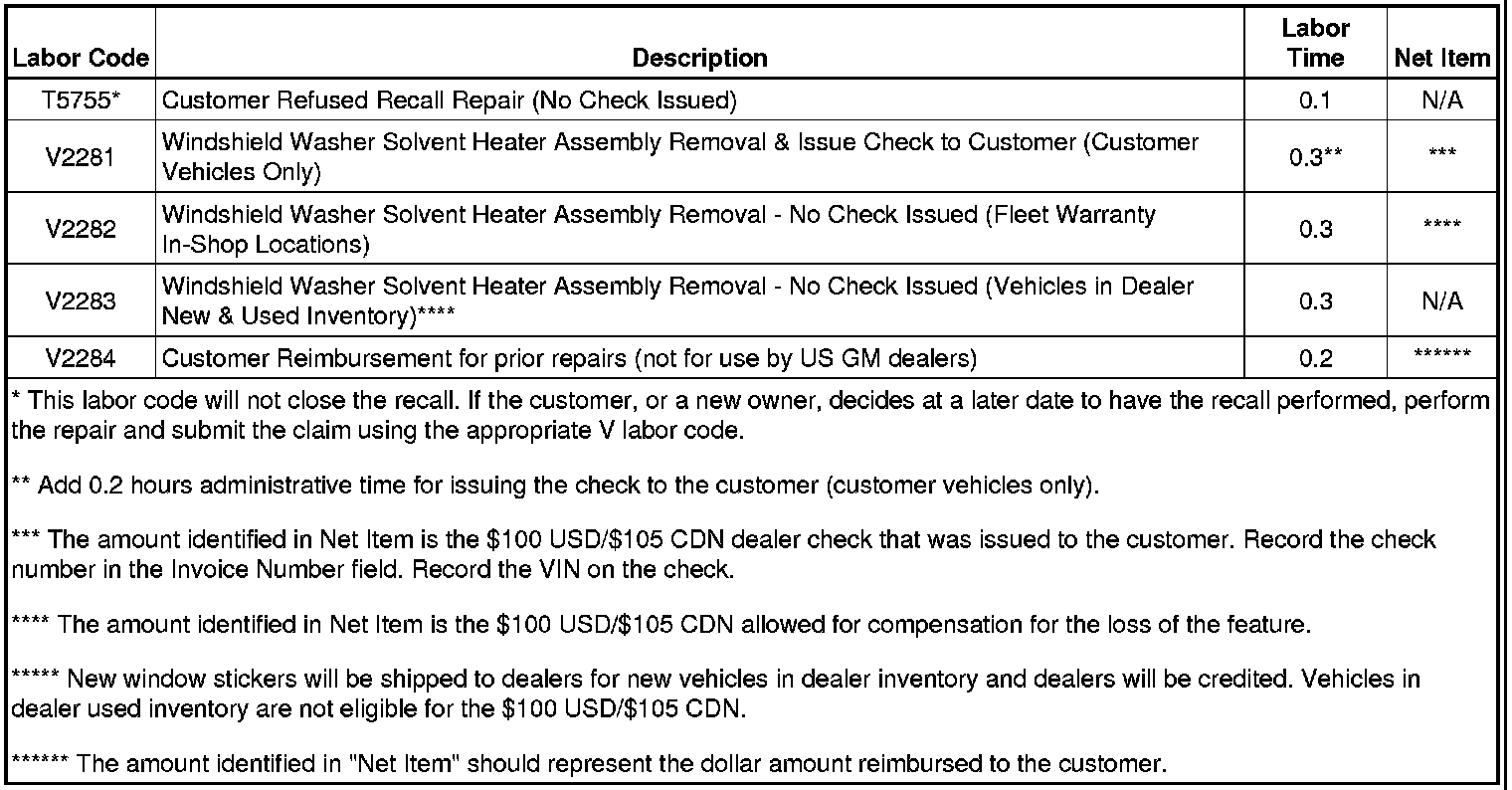 (For GM US Only) Refer to the GM Service Policies and Procedures Manual, section 6.1.12, for specific procedures regarding customer reimbursement and the form.