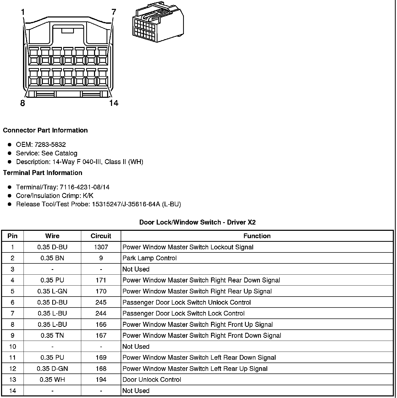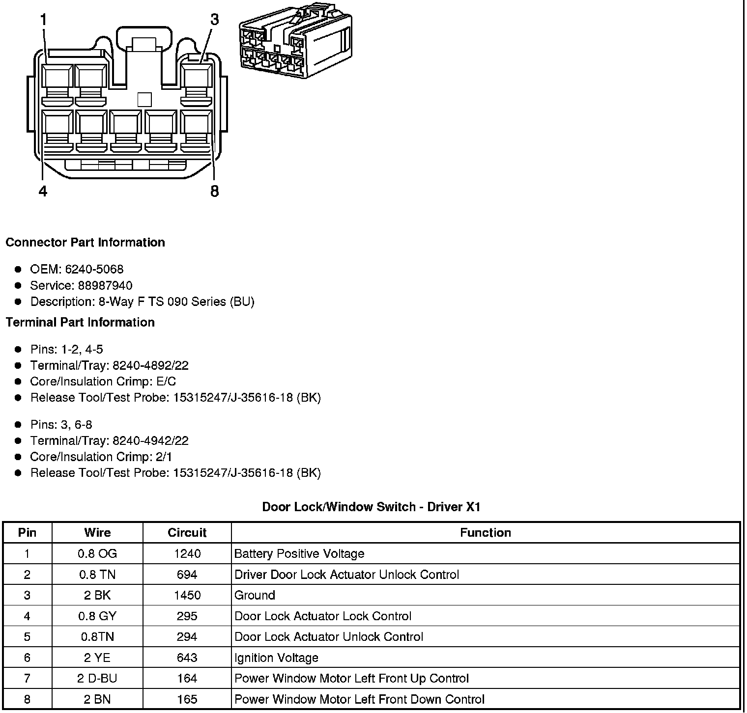Door Lock/Window Switch - Driver X1Door Lock/Window Switch - Driver X2
