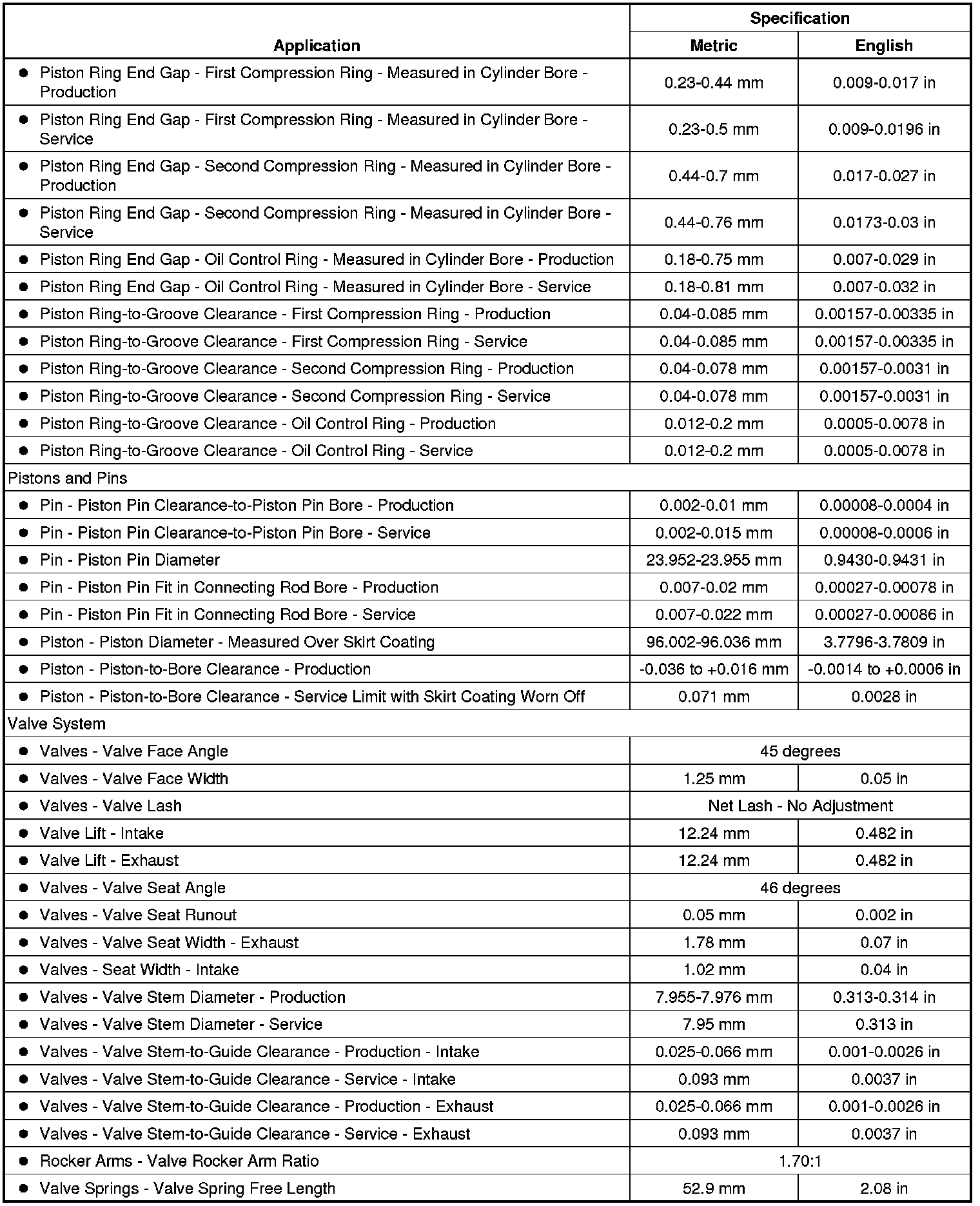 Engine Mechanical Specifications