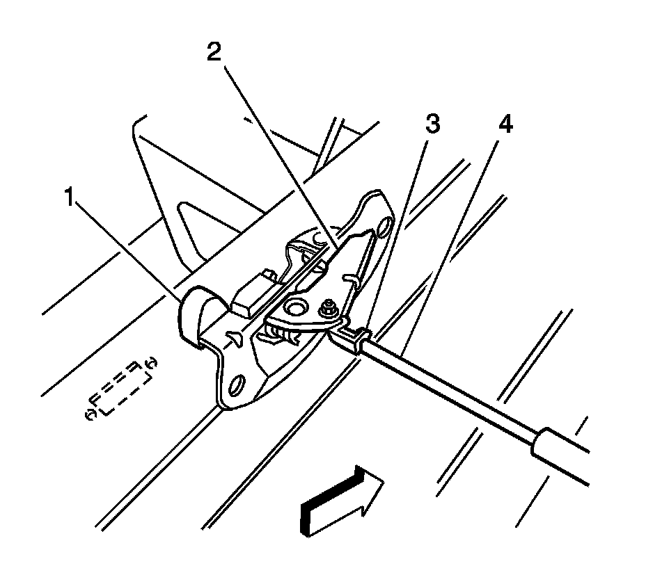 4. Lift the right side end gate off the end gate trunnion (2).