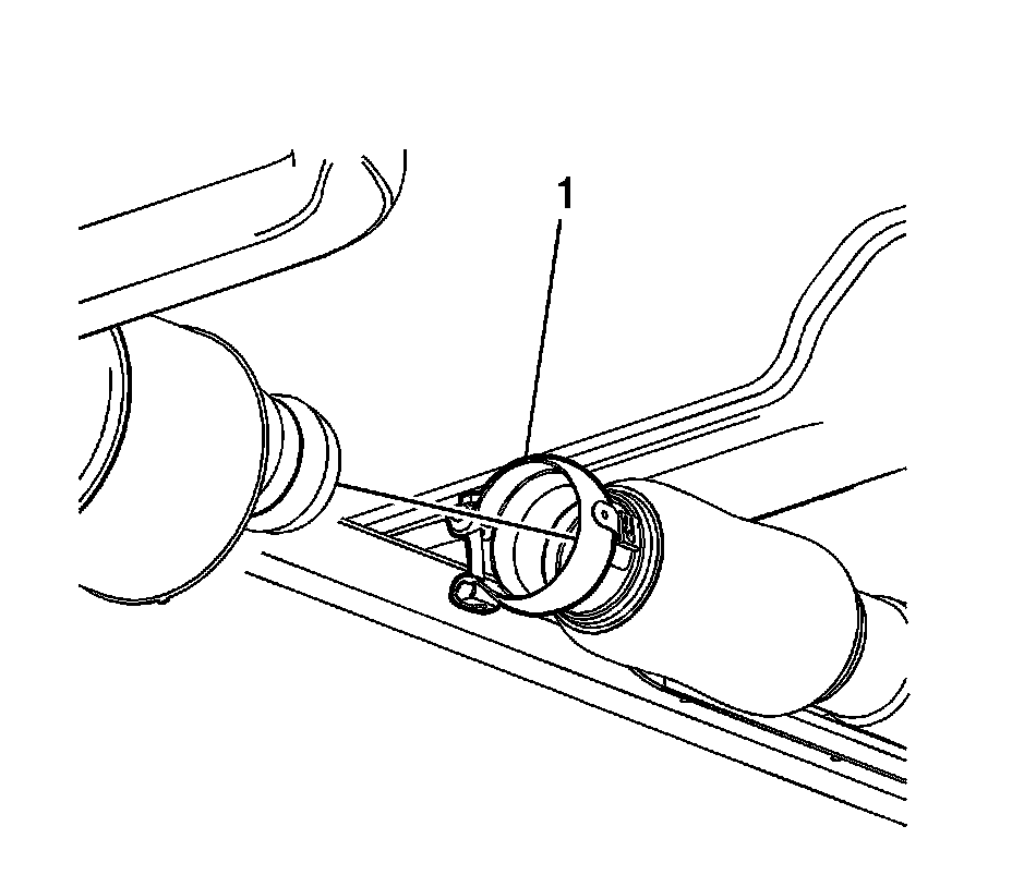 4. Position the three way converter to the muffler assembly and tighten the clamp bolt (1) to 44 Nm(32 lb ft).